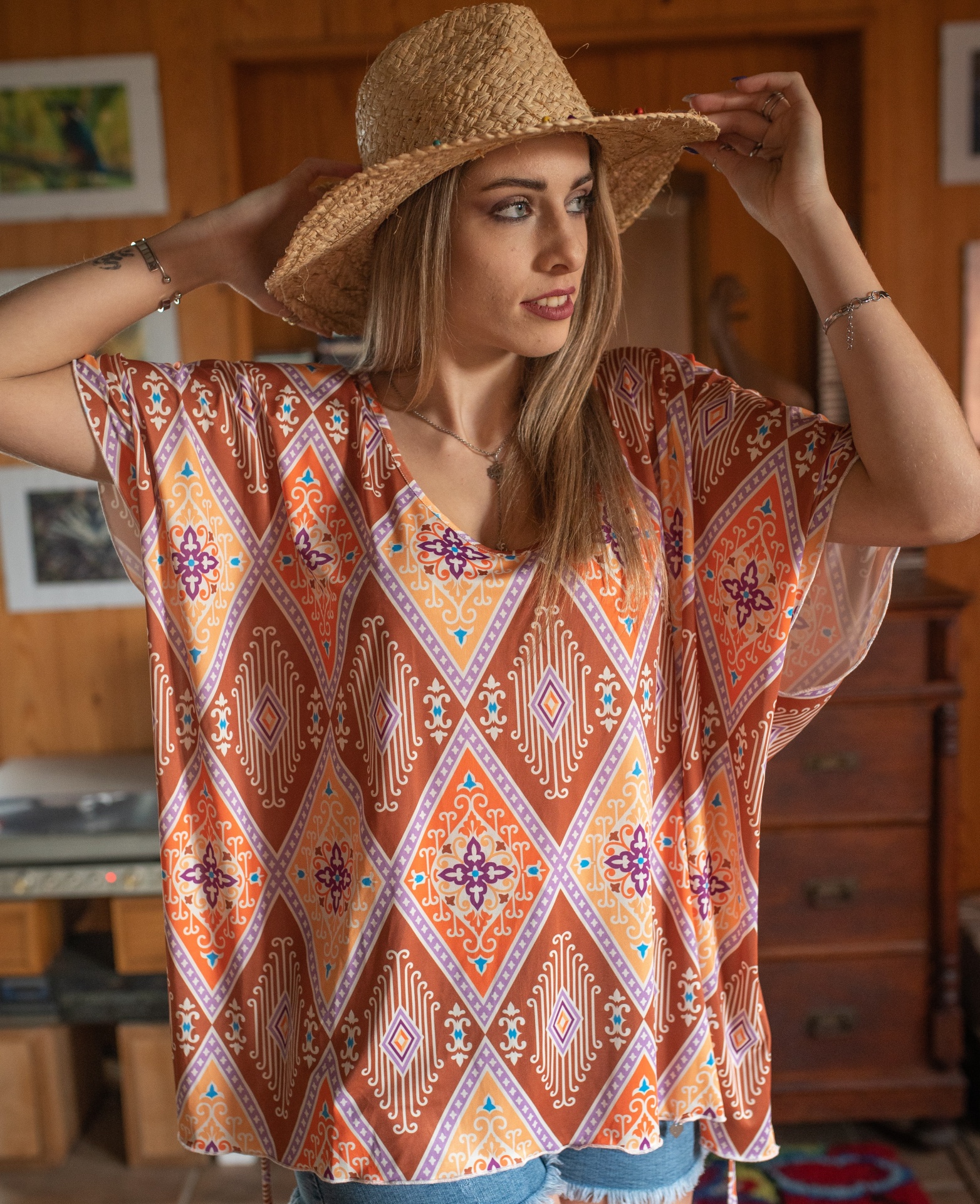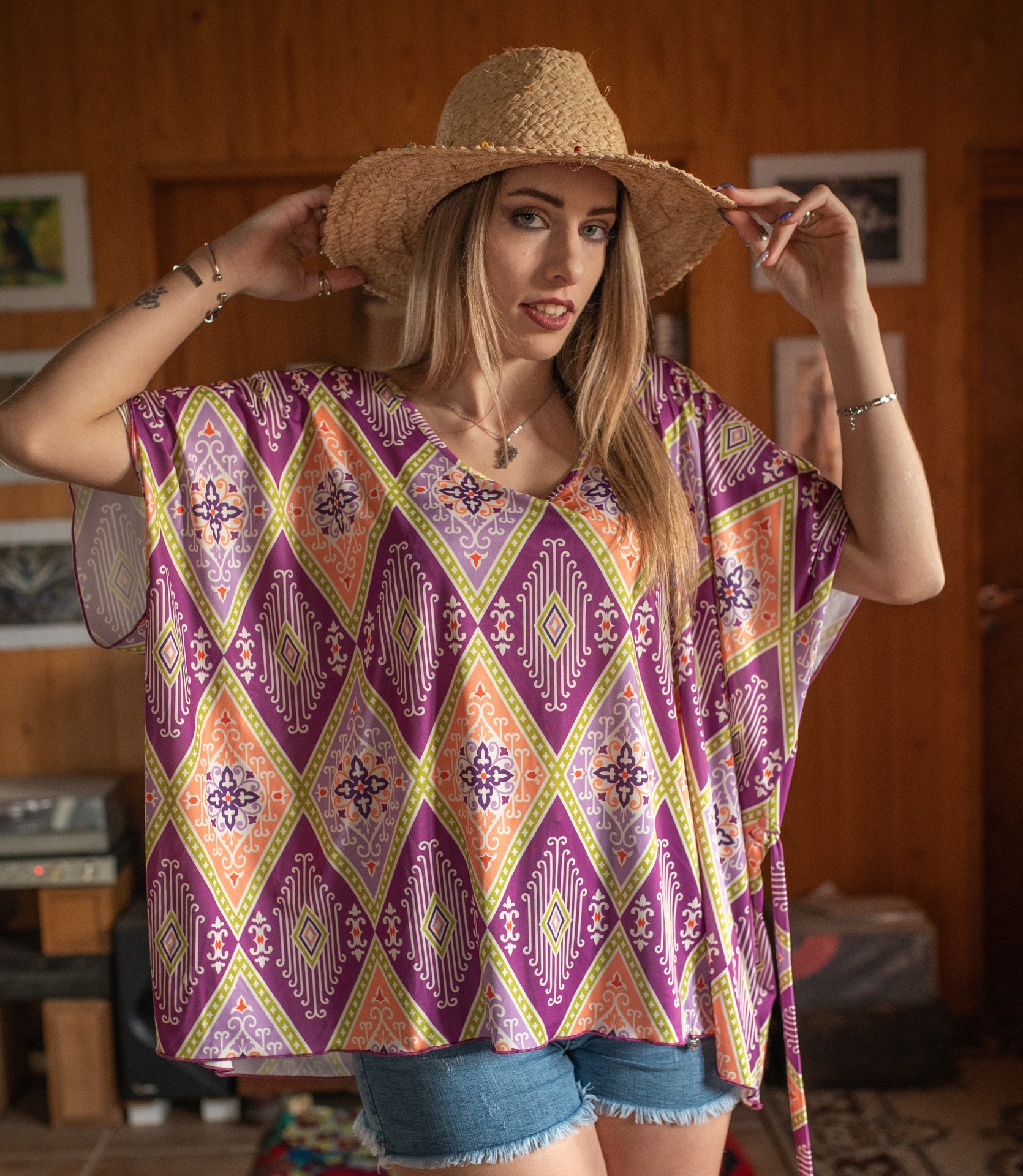 TÚNICA PONCHO 57,90 € Desconto de %. Artigo exclusivo Tamanho Único Ler mais Cor Laranja Roxo Quantidade Comprar Contactar 6 unidades em stock | SKU: BL 560 Tags TúnicasOversize Características Partilhar